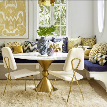 This chair's feet is made by solid stainless steel and designed like the arrowhead design. The seat and back filed by high-denstiy sponge and comfortable velvet.